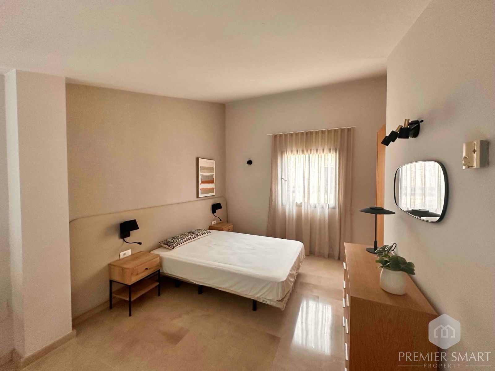 Apartamento de 2 habitaciones, uno de ellos en suite con baño incorporado, ducha amplisima y vestidor extenso. ( planta 1) La segunda habitación amplia, con dos camas de 90 cada una, un cuarto de baño completo, trastero y seguidamente, una amplia y equipada cocina, comedor y salon en espacio abierto todo en uno. Desde el salón se podrá acceder a la cómoda terraza en donde se podrá divisar la vision urbana de la zona. Todo ello, detalladamente amueblado con muebles nuevos y actuales.